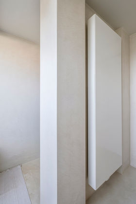 We verzorgden er enerzijds de sanitaire installatie en afwerking voor de douchecel in de slaapkamer van de zoon en de badkamer van de ouders, alsook de verwarmings-installatie voor deze ruimtes waarbij er een plaatradiator werd geplaatst in de badkamer en een, in eik ingewerkte, convector in de slaapkamer.